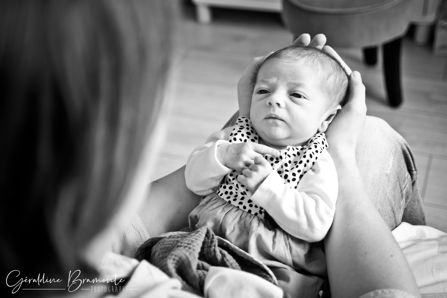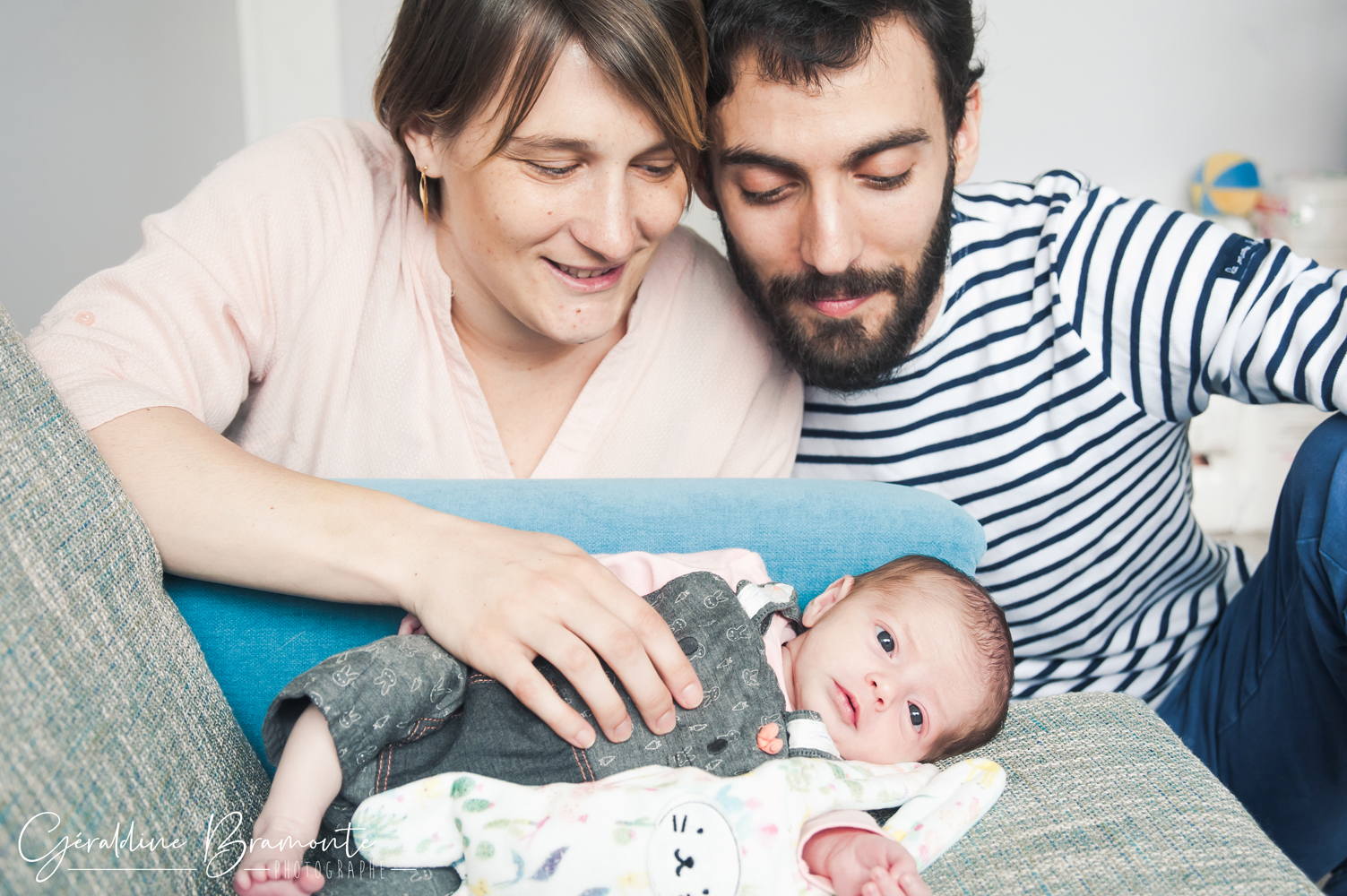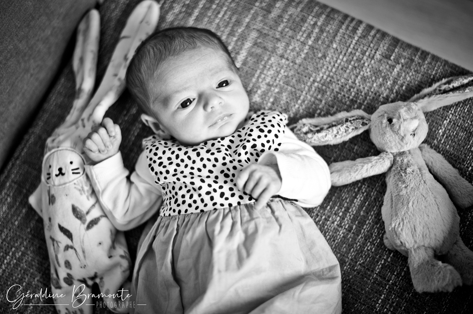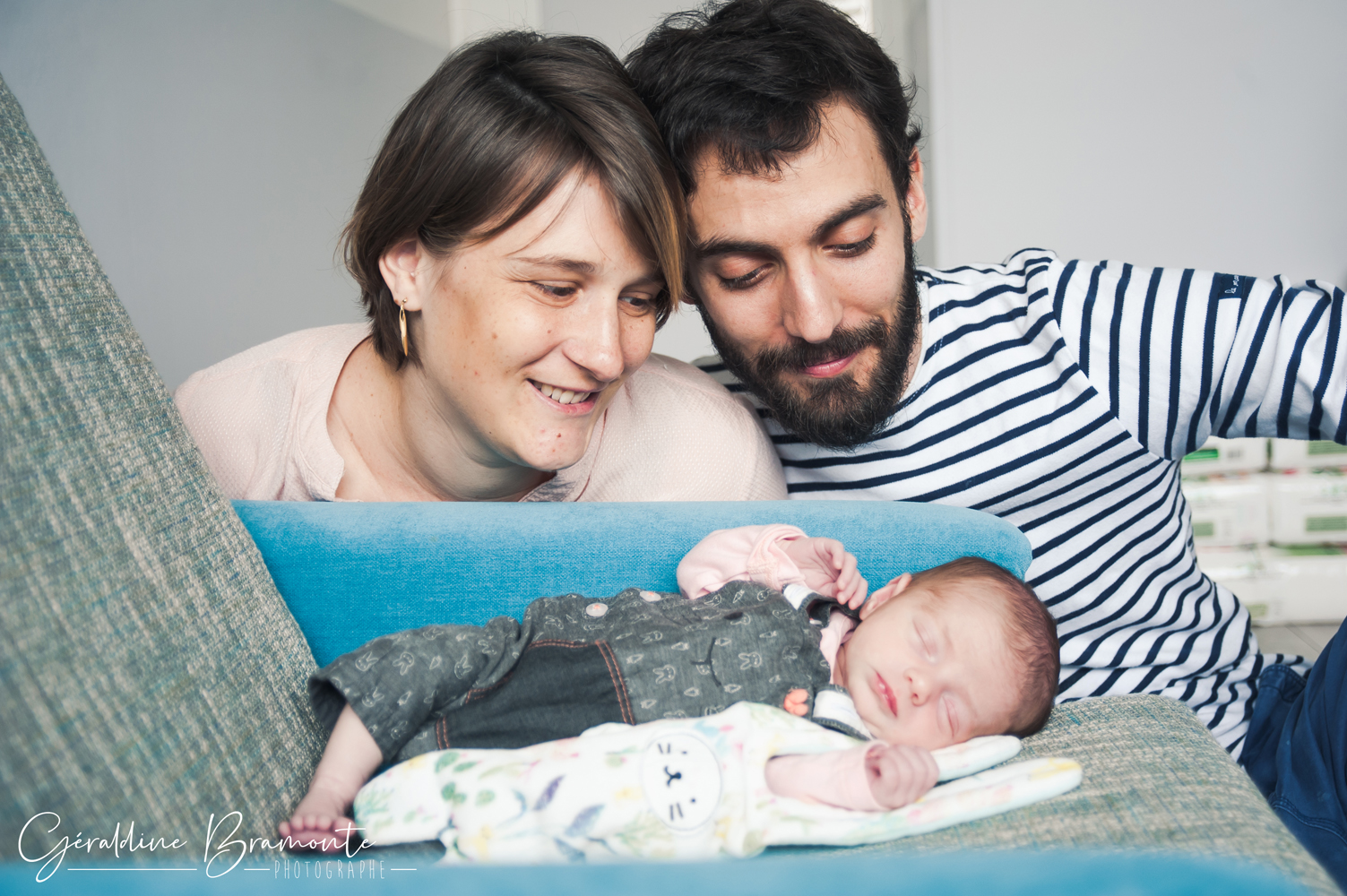 Voici les photos de la séance photo naissance de Juliette. Dans la chambre de la toute jeune Juliette, à peine 3 semaines avec ses parents Pauline & Davy, dans leur appartement de Lyon. Même le chat s’était invité à la séance 😉